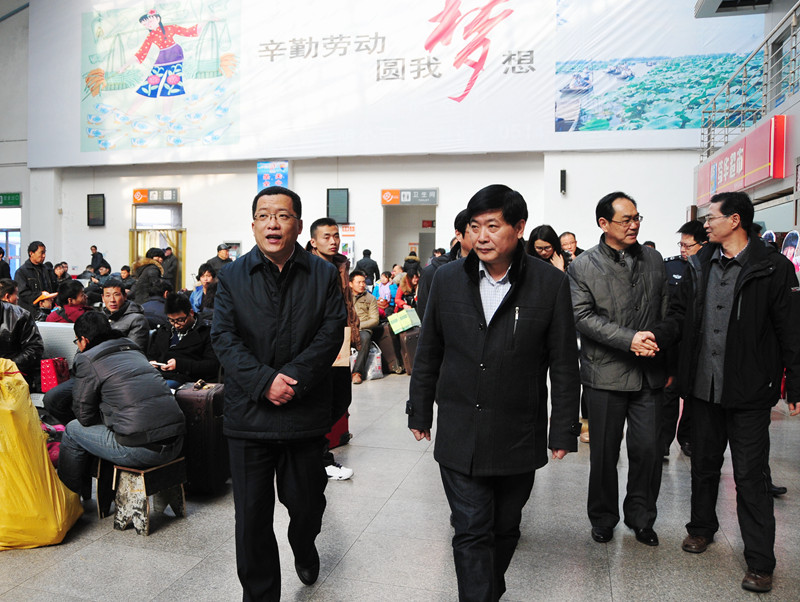春節(jié)將至,為確保生產(chǎn)安全,讓群眾過一個歡樂祥和的節(jié)日,1月26日下午,市委常委、常務(wù)副市長丁純帶領(lǐng)市公安局、安監(jiān)局等相關(guān)部門負責(zé)人,來到揚州站檢查春運情況,向奮戰(zhàn)在春運一線的干部職工表示慰問。