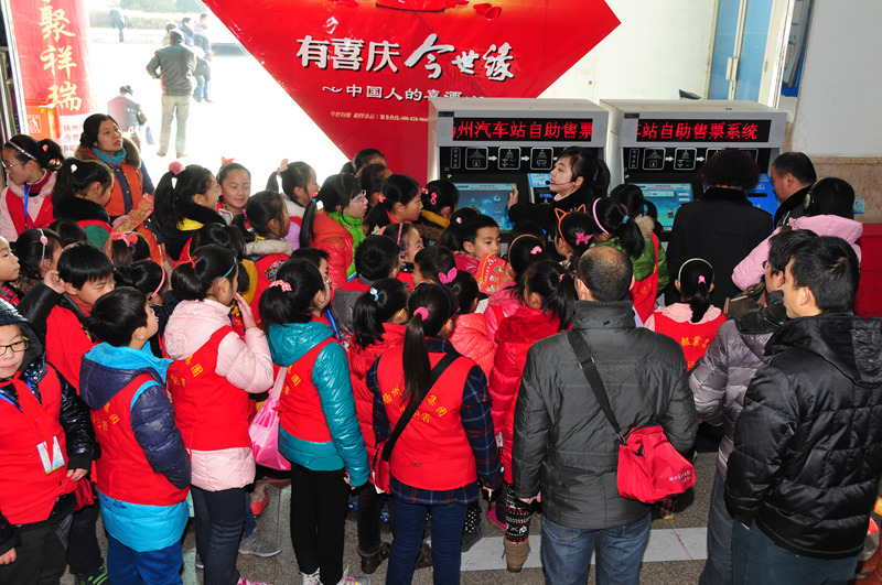 1月22日,來自揚州報業(yè)傳媒集團的60多名小記者來到揚州汽車站,觀看了GPS監(jiān)控中心、售票大廳和自助售票機工作情況,體驗了車站安檢、檢票工作,并采訪了揚汽集團總經理、黨委書記吳忠俊……他們在現場親身體會了繁忙而和諧的2014年春運。