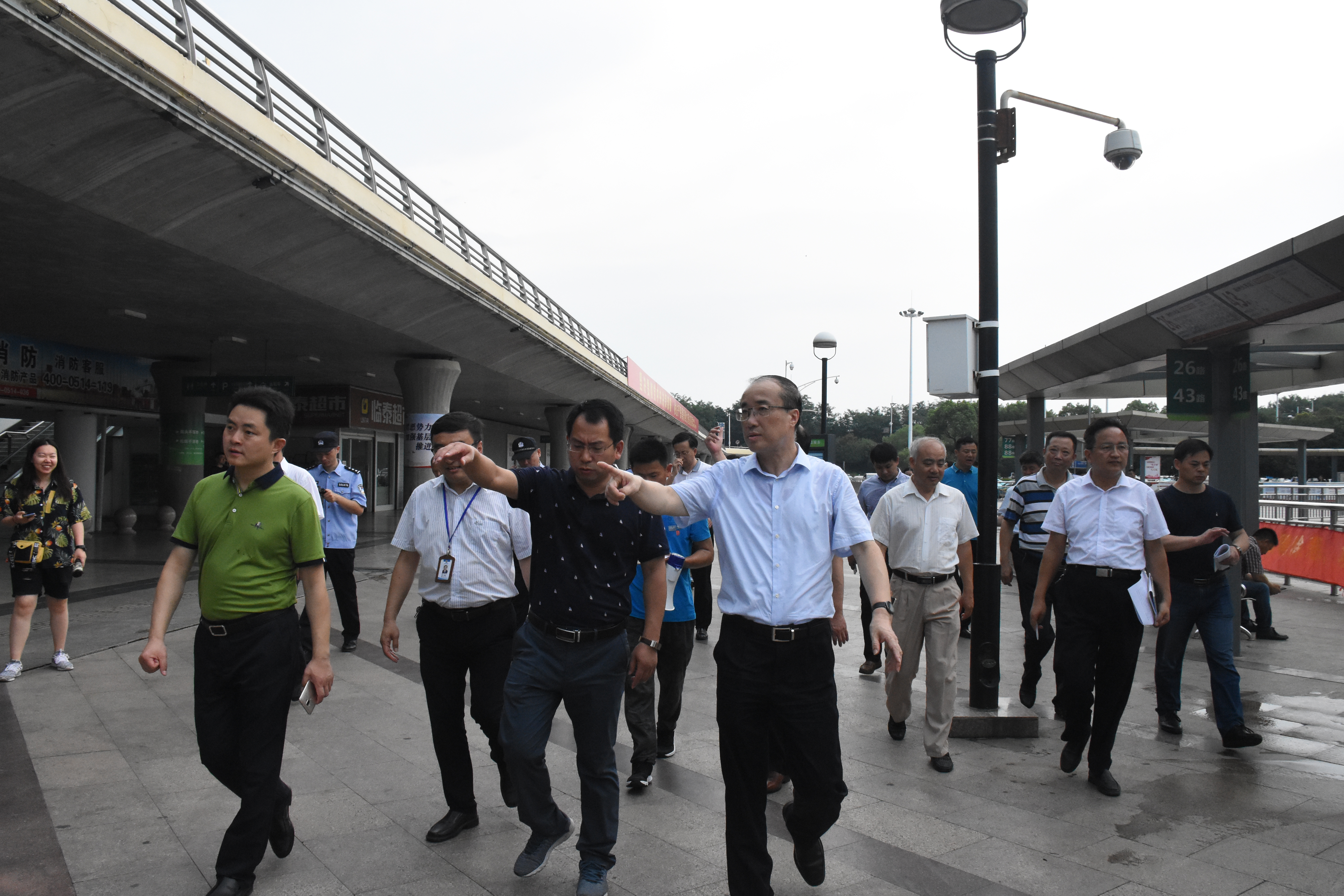 7月27日上午,揚(yáng)州市副市長(zhǎng)宮文飛帶領(lǐng)各相關(guān)部門來(lái)到西部客運(yùn)樞紐,開展綜合巡查工作。重點(diǎn)巡查火車站、汽車站和站前廣場(chǎng)的綜合治理情況。交通產(chǎn)業(yè)集團(tuán)副總經(jīng)理,揚(yáng)汽集團(tuán)黨委書記、董事長(zhǎng)龔宇峰等相關(guān)單位負(fù)責(zé)人陪同。