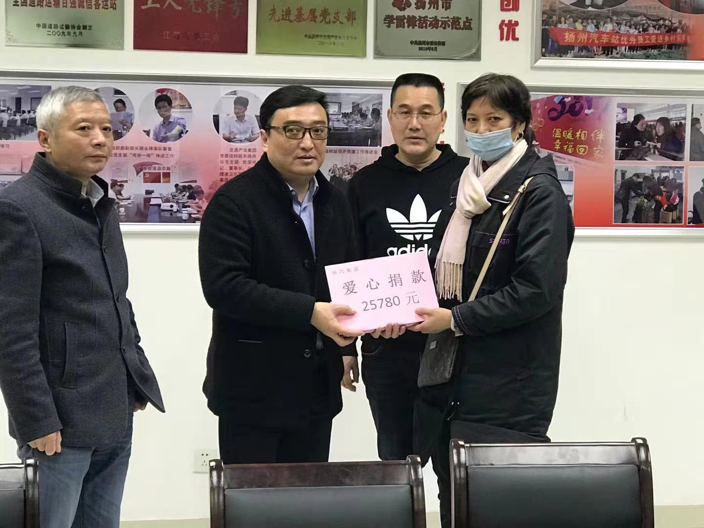 愛心點(diǎn)燃希望,真情傳遞溫暖,今年年初突發(fā)精神病的駕駛員馬安權(quán)一直牽動著全司職工的心。因馬安權(quán)住在ICU病房無法到院看望,4月6日上午,揚(yáng)州汽車站工會和車站領(lǐng)導(dǎo)邀請馬安權(quán)家屬來到車站,將募捐到的兩萬五千多元愛心捐款交到馬安權(quán)家屬手中。