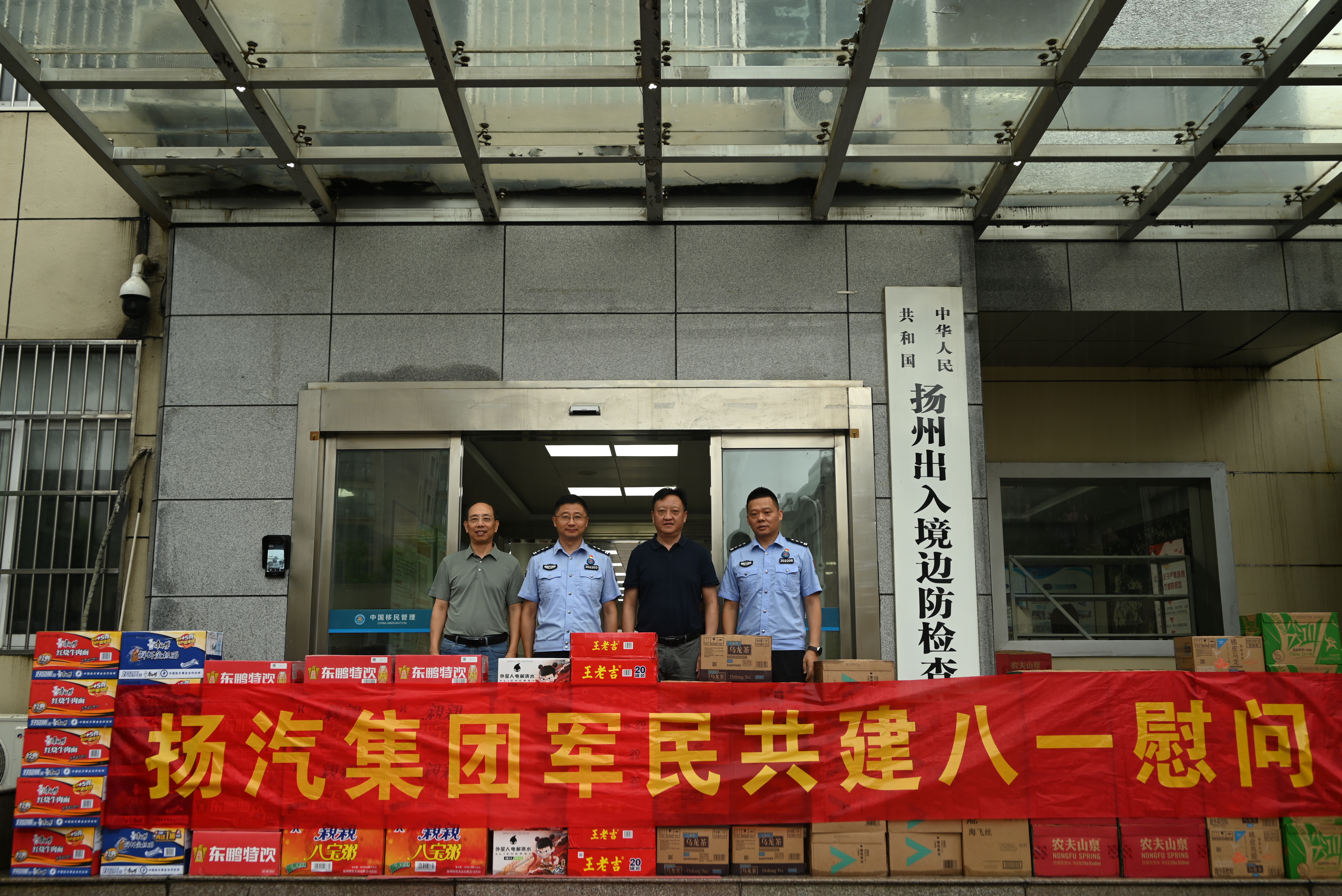 在“八一”建軍節(jié)即將來臨之際,7月31日,揚(yáng)汽集團(tuán)黨委副書記、副董事長(zhǎng)、總經(jīng)理劉俊一行,前往黨建共建單位揚(yáng)州出入境邊防檢查站進(jìn)行走訪慰問,向官兵們送上節(jié)日的祝福和誠摯的問候。揚(yáng)州出入境邊防檢查站副站長(zhǎng)李崗,揚(yáng)汽集團(tuán)黨委副書記、紀(jì)委書記、工會(huì)主席陳家宏參加活動(dòng)。
